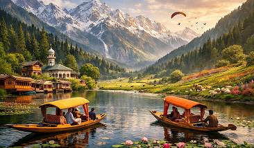 Enjoy peaceful Shikara rides on Dal Lake, explore Gulmarg’s snowy peaks, and experience the scenic beauty of Pahalgam’s lush valleys.